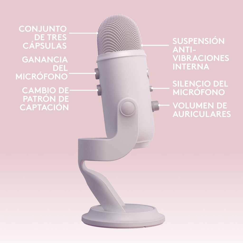 - Acabado de edición especial – El complemento perfecto de tu teclado, ratón y auriculares con micrófono Logitech G Aurora Collection, el flamante acabado de Yeti realza la estética de tu stream de juego