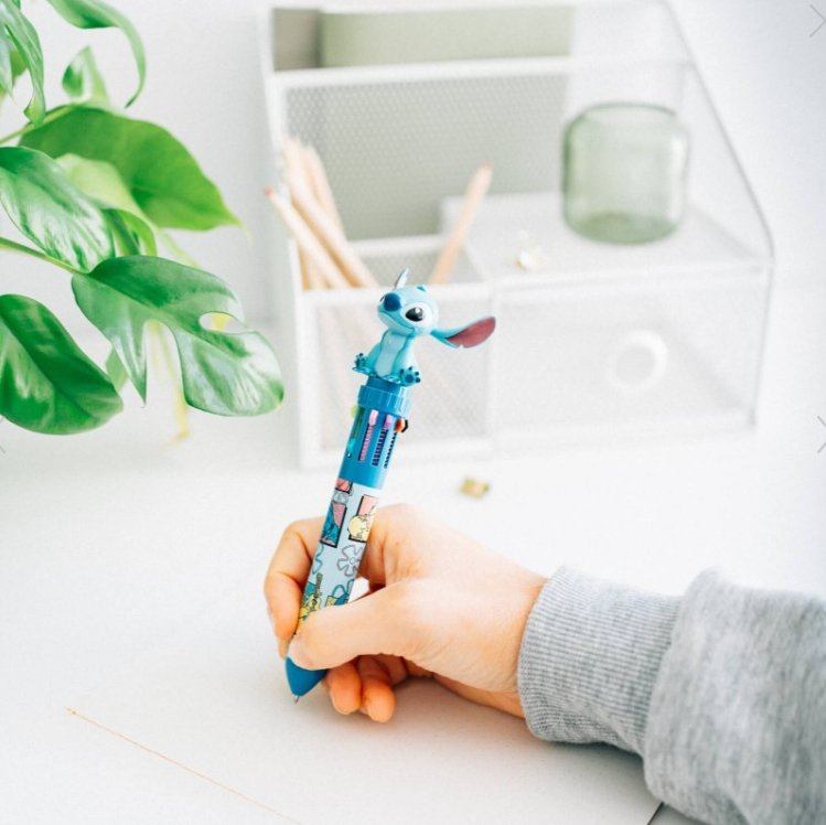 Este bolígrafo de Stitch está inspirado en el personaje de Disney y tiene un total de 10 colores diferentes. Ha sido fabricado en PVC y cuenta con un topper en 3D del personaje en la parte superior del mismo.