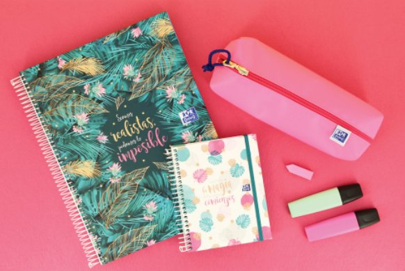 - Estuche con goma a juego que permite acoplar con el cuaderno o carpeta para transportarlo cómodamente
