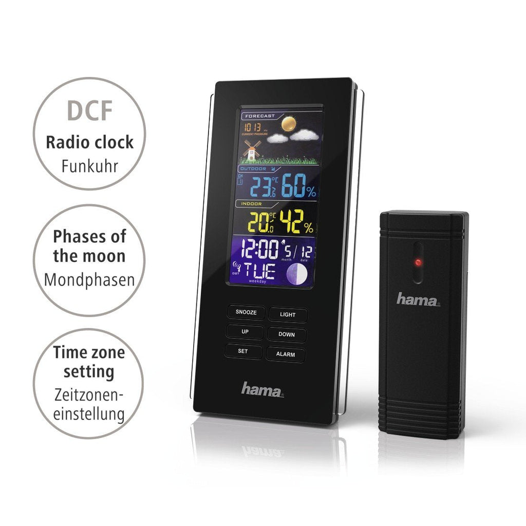 Hama Color Edge, Negro, Higrómetro de interior, Termómetro de interior, Barómetro para exteriores, Higrómetro de..., Barómetro, Higrómetro, Termómetro, 20 - 99%, 20 - 99%, 0 - 50 °C