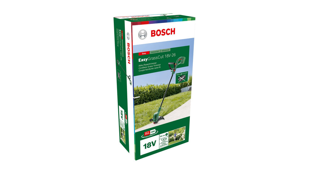Bosch EasyGrassCut 18V-26, 2 en 1: desbrozadora y cortabordes, 26 cm, Hilo de nailon, Empuñadura en U, Nylon, 1.6mm x 4m