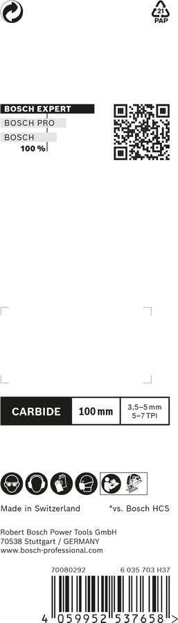 Bosch 2 608 900 541, Hoja de sierra de vaivén, Madera noble, Plástico, Carburo, Gris, Punta de carburo de tungsteno (TCT), 3,5 mm