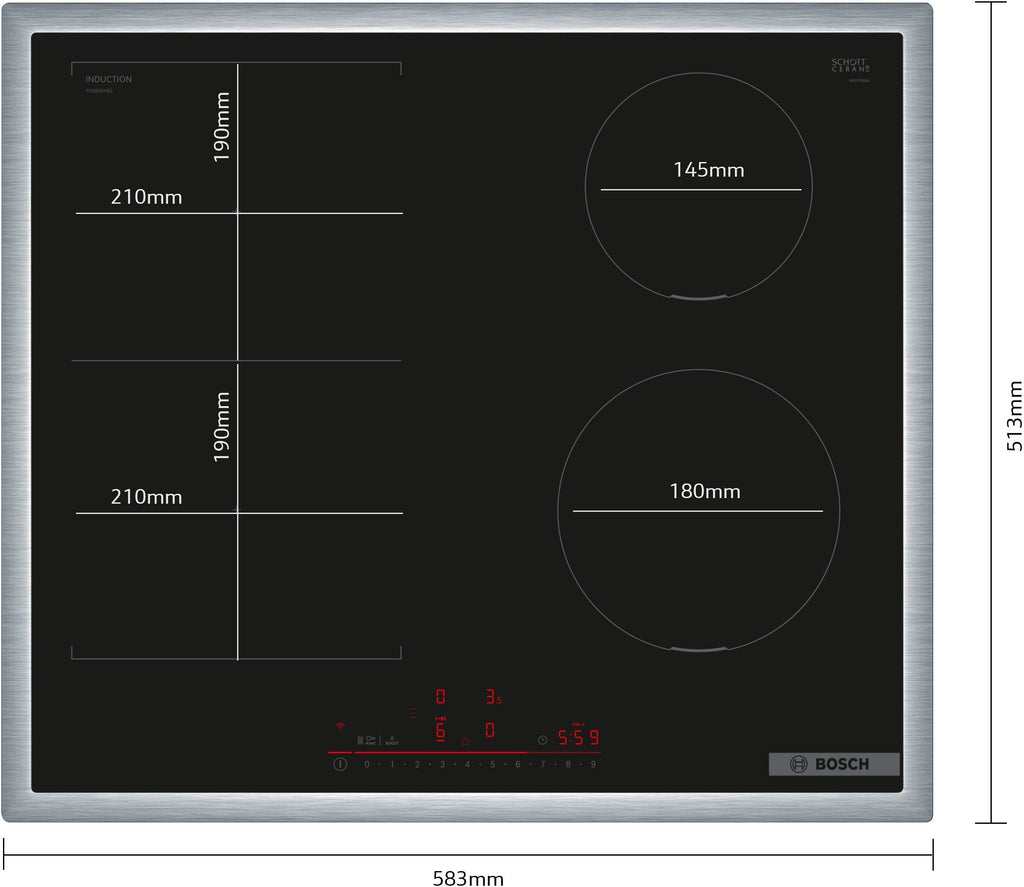 Bosch Serie 6 PVS645HB1E, Negro, Integrado, 60 cm, Con placa de inducción, Vidrio y cerámica, 4 zona(s)