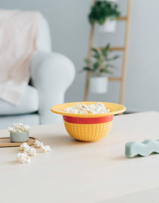 Este bowl de One Piece representa el sombrero de Luffy y es el recipiente ideal para disfrutar de unas buenas palomitas o cualquier otro tipo de snack. Tiene una capacidad de 500 mililitros. Está fabricado en dolomita con decoración en relieve y acabado en brillo. Mide aproximadamente 20 x 20 x 8,7 centímetros. No apto para lavavajillas y microondas.