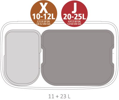 - Tamaño de bolsas de basura compatibles (máx): 25 L