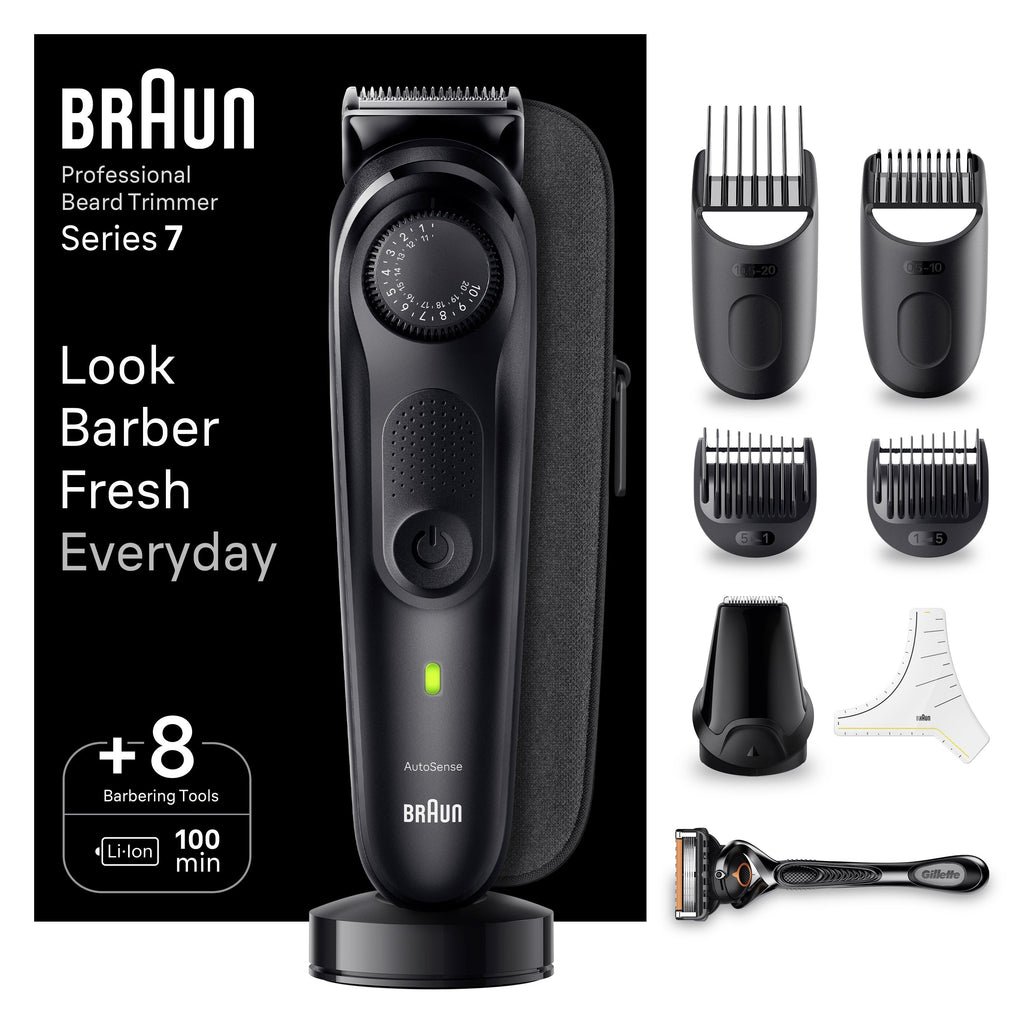 Braun BeardTrimmer 7 80708231, Lavable, No necesita mantenimiento ni lubricación, Batería, Negro