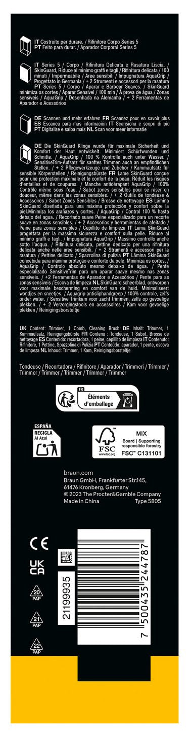 Recorte suave: la recortadora corporal para hombre Braun Series 5 proporciona bienestar a la piel incluso en las zonas sensibles.