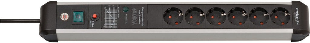 Brennenstuhl 1391010600, 3 m, Interior, Angular, IP20, Negro, Plata, 6 salidas AC