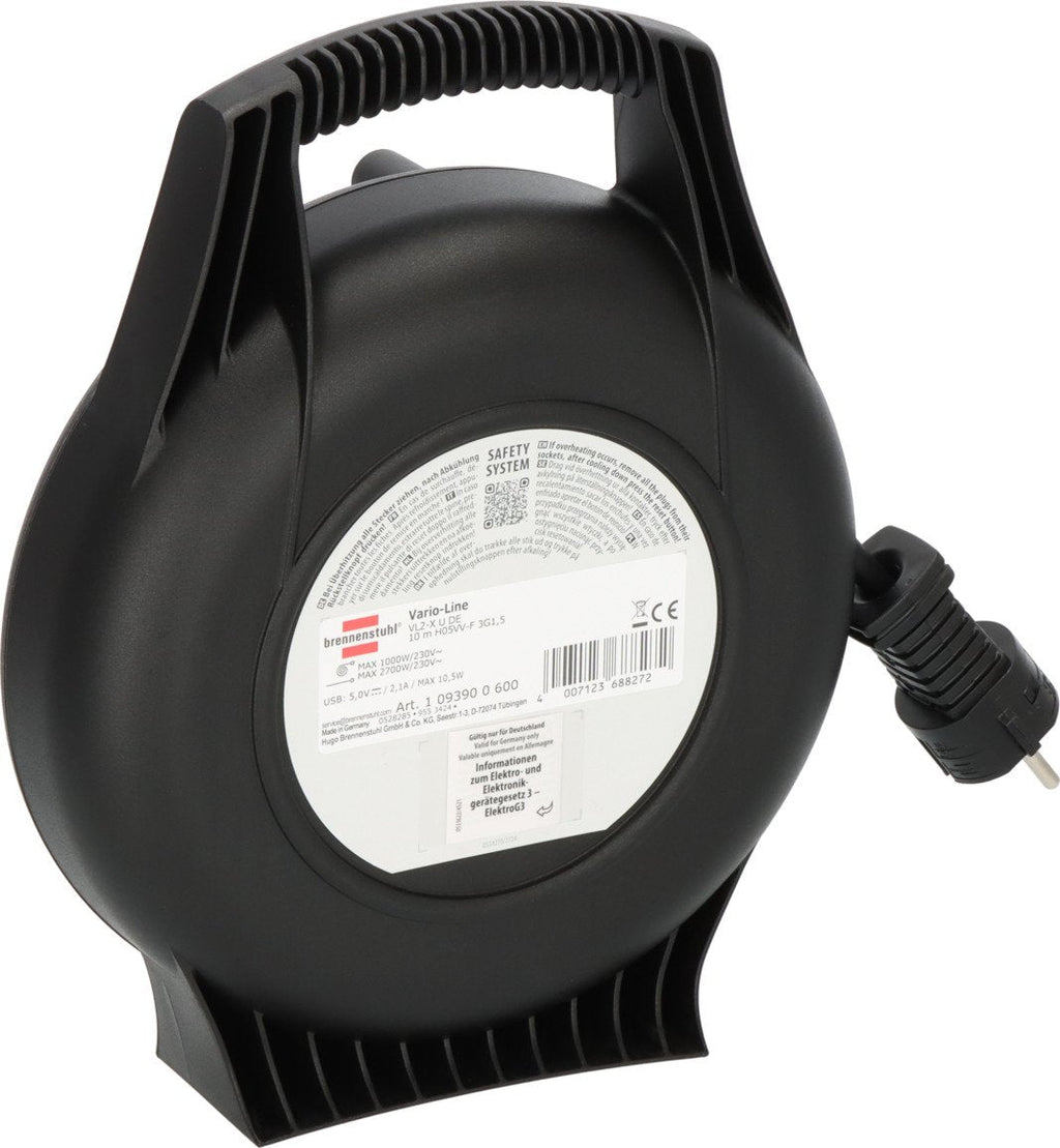 Brennenstuhl 1093900600, 10 m, Interior, IP20, Protección contra sobrecalentamiento, Plástico, Cloruro de polivinilo (PVC), Negro