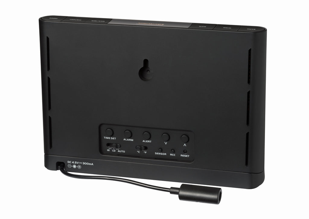- Funciones de medición: Anemómetro (velocidad del viento), Higrómetro de interior, Termómetro de interior, Barómetro para exteriores, Higrómetro de exterior, Termómetro para exteriores, Sensor de lluvia, Dirección del viento