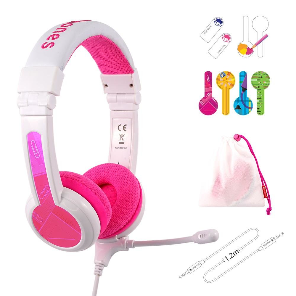 BuddyPhones School+, Alámbrico, Llamadas/Música, 20 - 20000 Hz, Auriculares, Rosa, Blanco