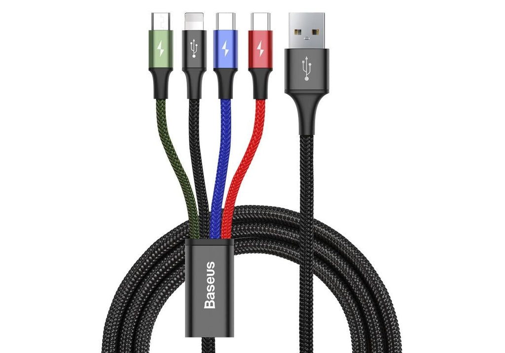 Baseus CA1T4-B01, Negro, USB A, Lightning + micro-USB B + USB C, 1,2 m, Macho, Macho