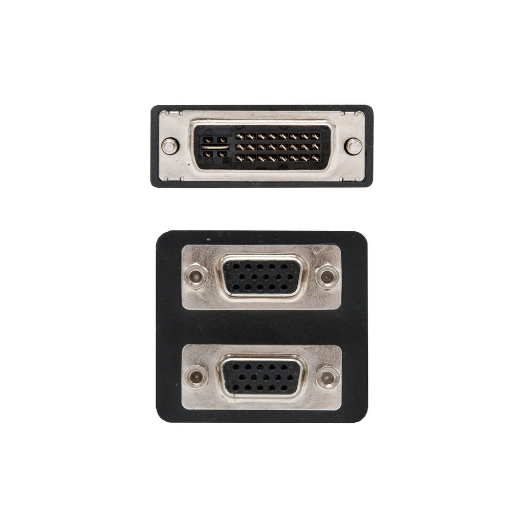- Conector tipo DVI macho en un extremo y dos conectores tipo D-sub HDB15 hembra en el otro.