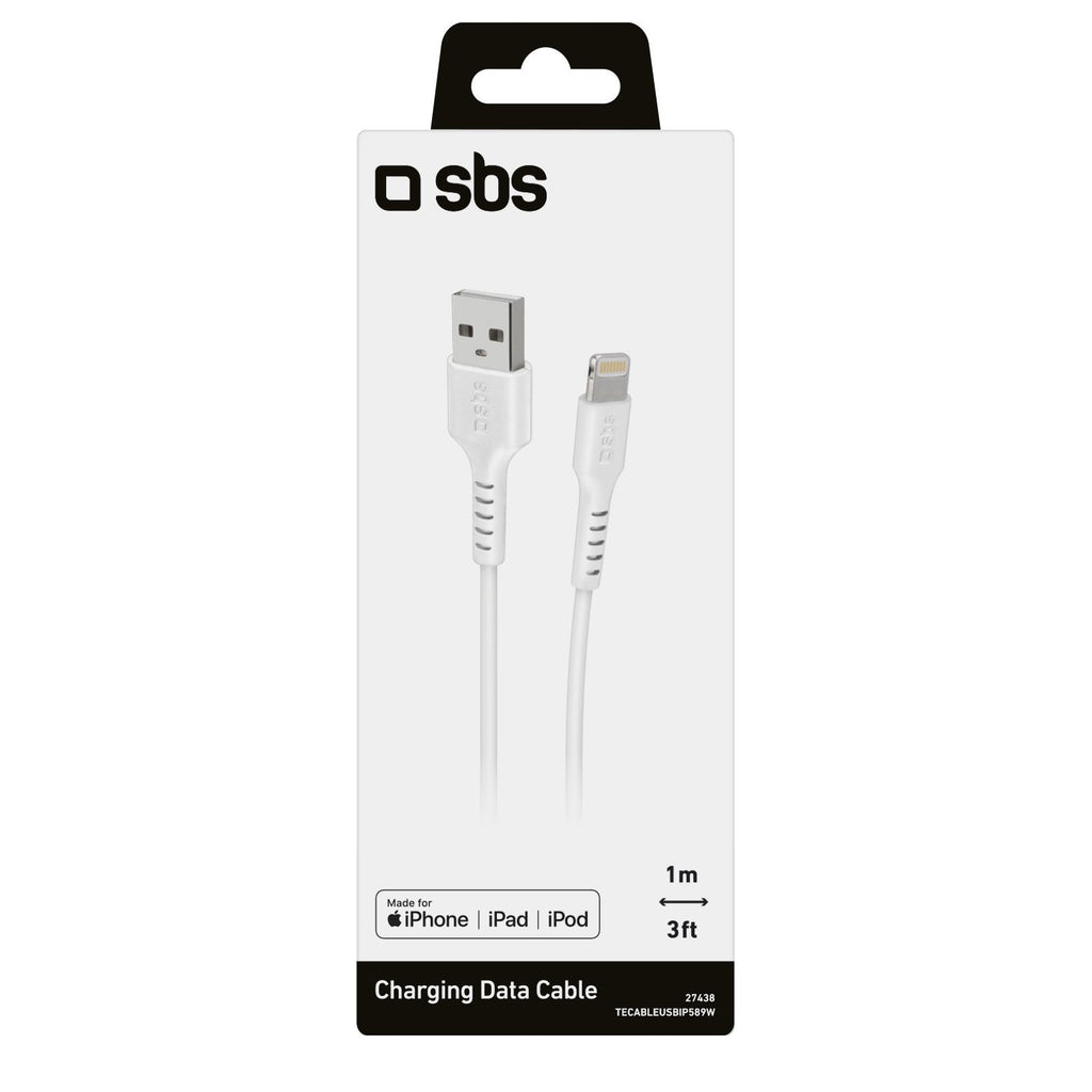 SBS TECABLEUSBIP589W, 1 m, Lightning, USB A, Macho, Macho, Blanco