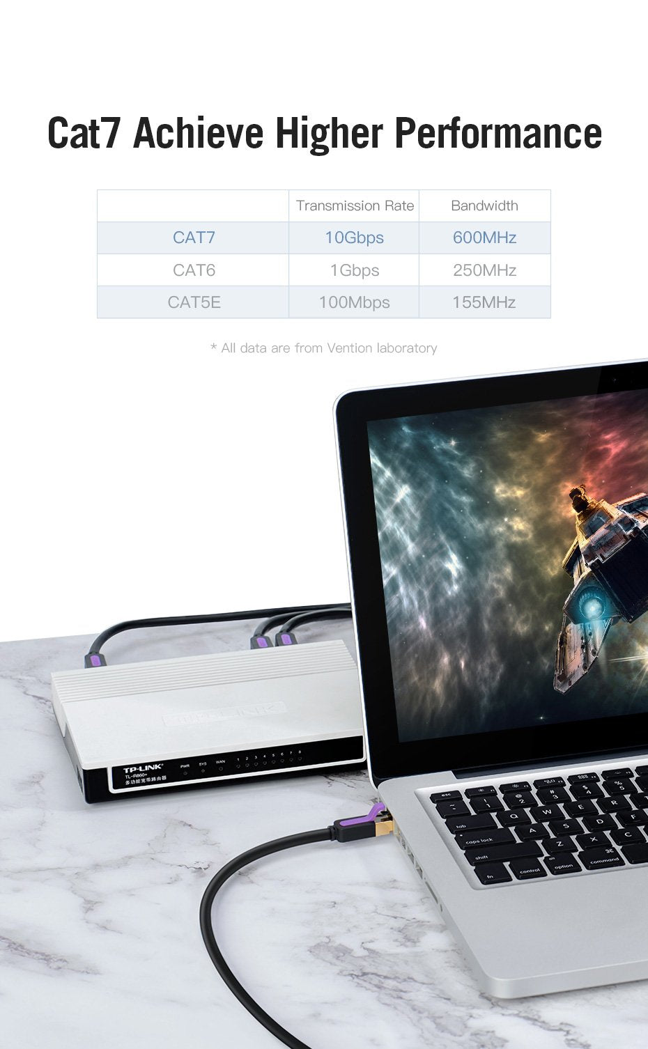 Vention Cable de Red RJ45 SFTP ICDBF Cat7/ 1m/ Negro, 1 m, Cat7, S/FTP (S-STP), RJ-45, RJ-45, Negro