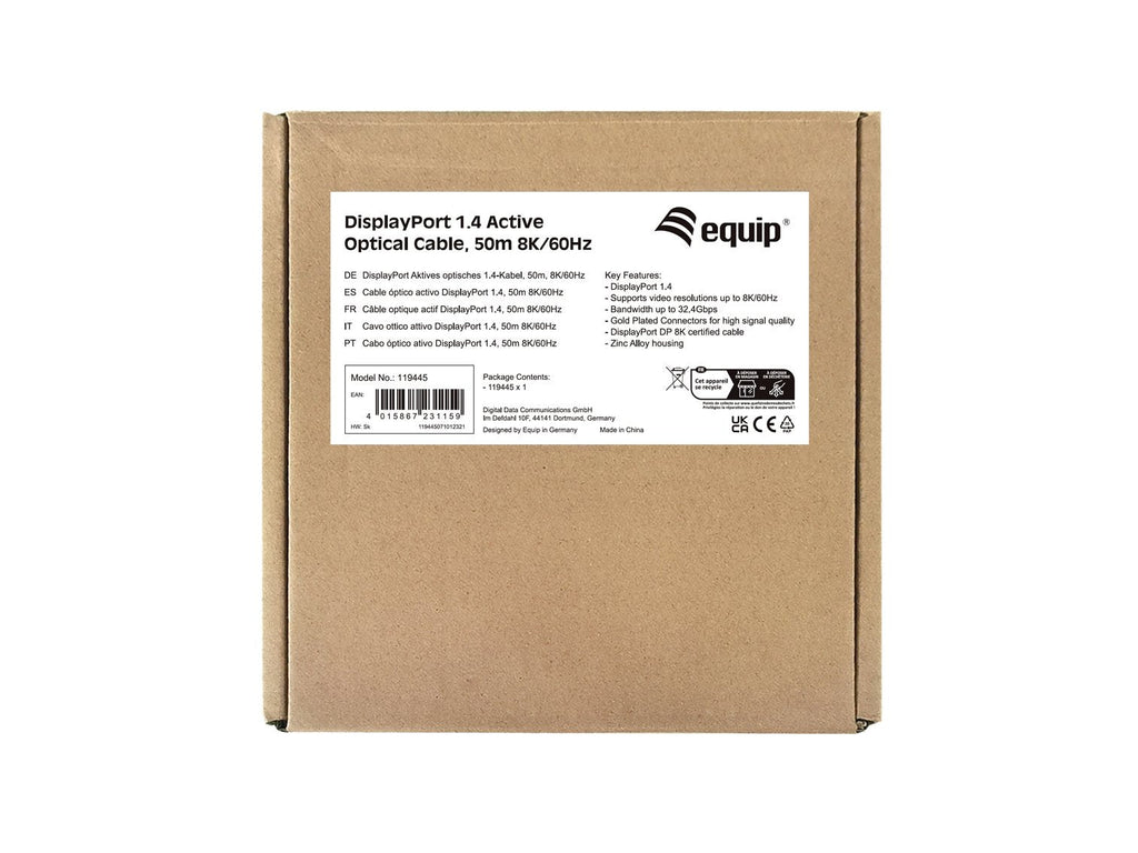 "El equipo 119445 DisplayPort 1.4 Active Optical Cable (AOC) es un cable de alto rendimiento utilizado para transmitir señales de vídeo digital a largas distancias. A diferencia de los cables de cobre, que tienen limitaciones en cuanto a la distancia a la que pueden transmitir señales sin degradación de la señal, DisplayPort 1.4 AOC puede transmitir datos hasta 100 metros sin necesidad de amplificadores o repetidores de señal adicionales.