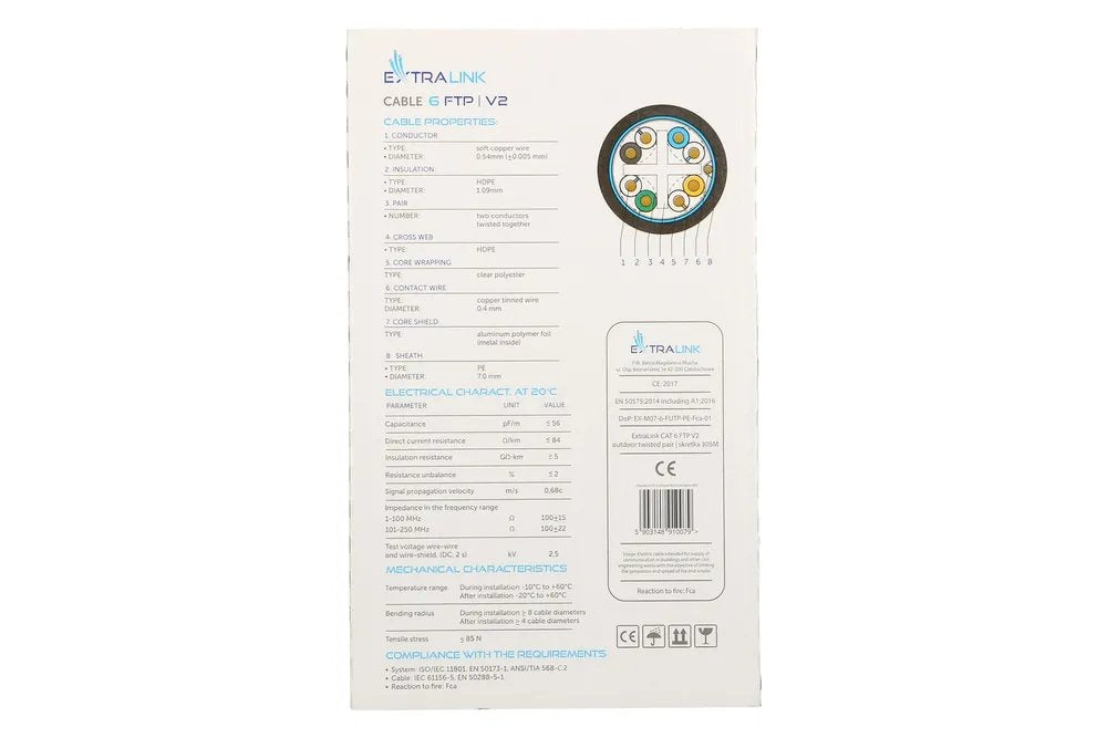 Extralink Par trenzado CAT6 FTP (F/UTP) V2 Exterior 305M, 305 m, Cat6, F/UTP (FTP), Negro
