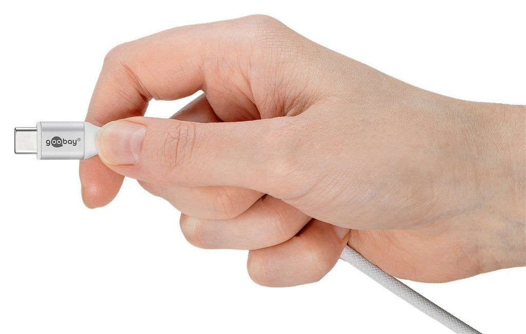 Goobay KAB USB-C (ST-ST) 2m Verbindungskabel Textilmantel White, 2 m, USB C, USB C, USB 2.0, 0,48 Gbit/s
