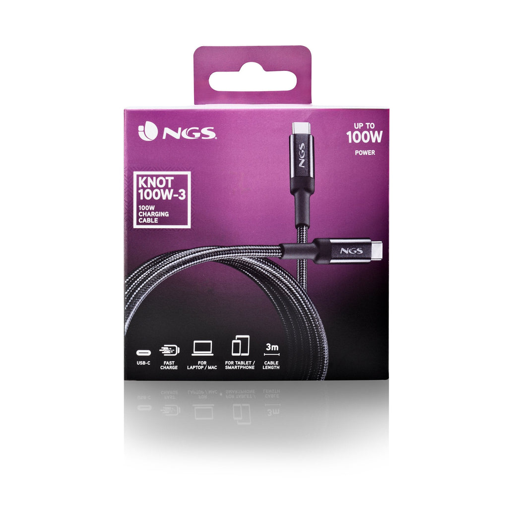 NGS KNOT 100W-3 cable USB USB 2.0 3 m USB C Negro