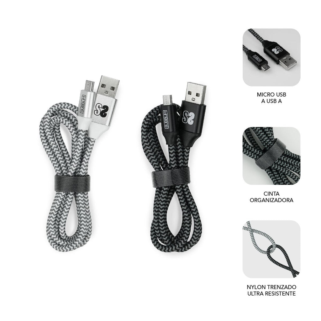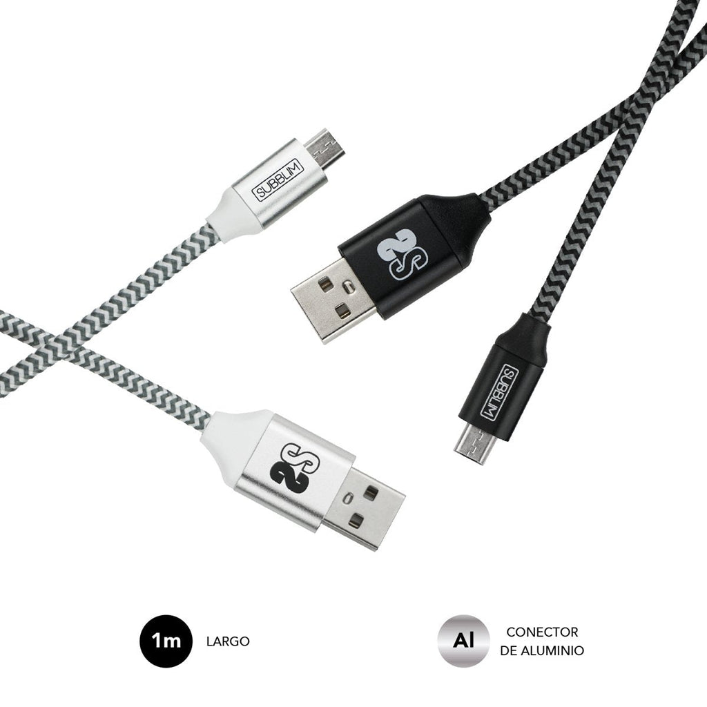 SUBBLIM PACK 2 CABLES USB A MICRO USB (2.4A) 1M BLACK/SILVER cable USB Micro-USB A Aluminio, Negro, Gris, Blanco