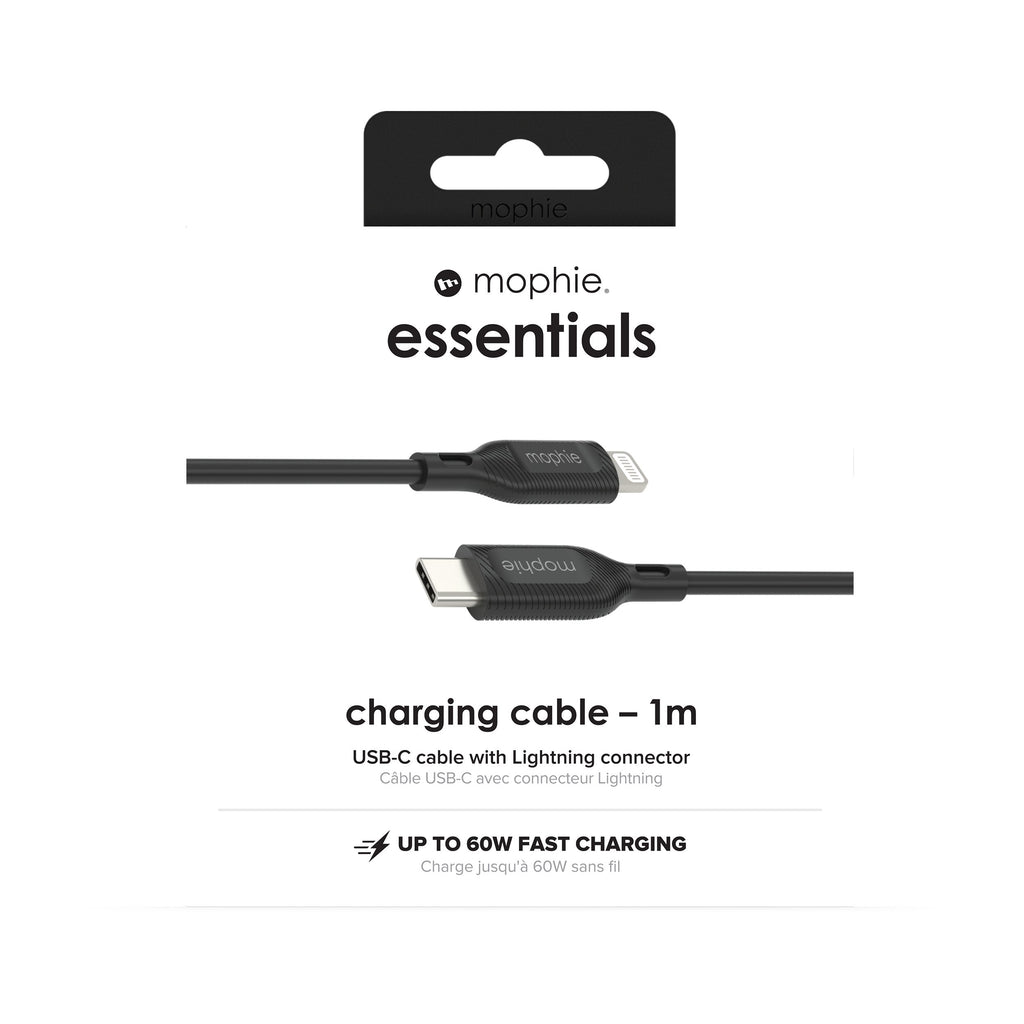 mophie essentials Lightning to USB-C | charging cable 1M, 1 m, Lightning, USB C, Macho, Macho, Negro