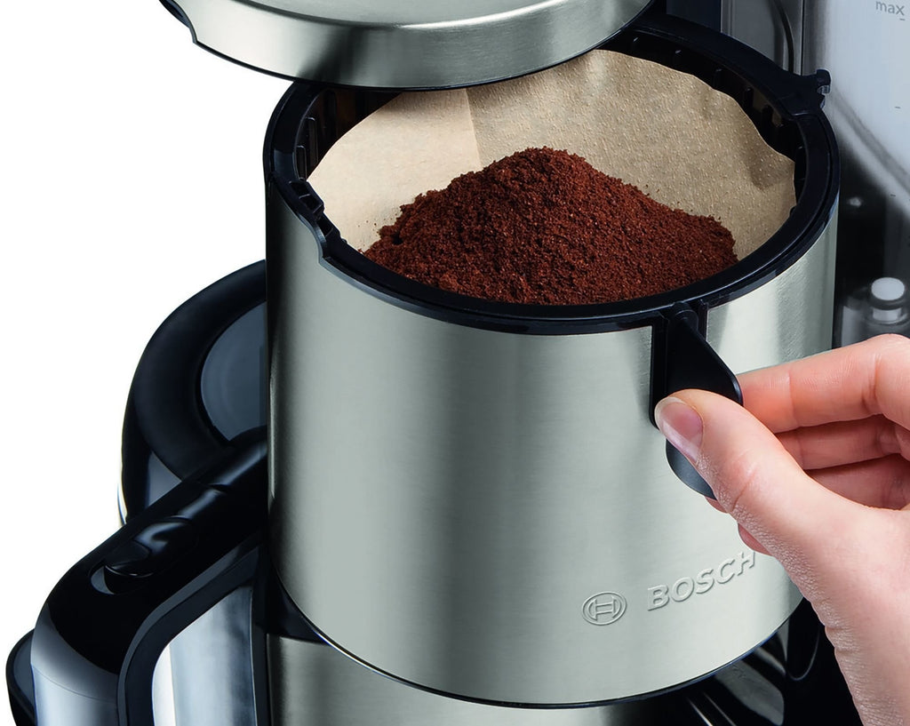 Bosch TKA8A683, Cafetera de filtro, 1,1 L, De café molido, 1100 W, Negro, Acero inoxidable