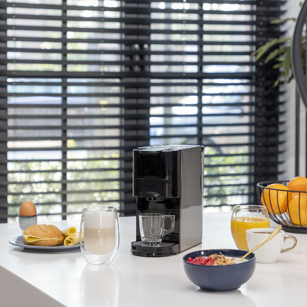 Los compartimentos para las cápsulas y las monodosis son fáciles de colocar. También puede configurar el tamaño de la taza presionando uno de los dos botones y soltándolo cuando llegue al nivel de café deseado. E incluso puede elegir si quiere un «lungo» o un expreso presionando tan solo un botón. Varias piezas, entre ellas el depósito de agua transparente de 0,8 litros, son extraíbles y fáciles de limpiar. ¡Esta cafetera lo tiene todo!