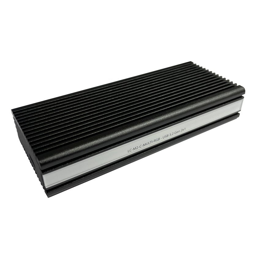 LC-Power LC-M2-C-MULTI-RGB, Caja externa para unidad de estado sólido (SSD), M.2, M.2, 10 Gbit/s, Conexión USB, Aluminio, Negro