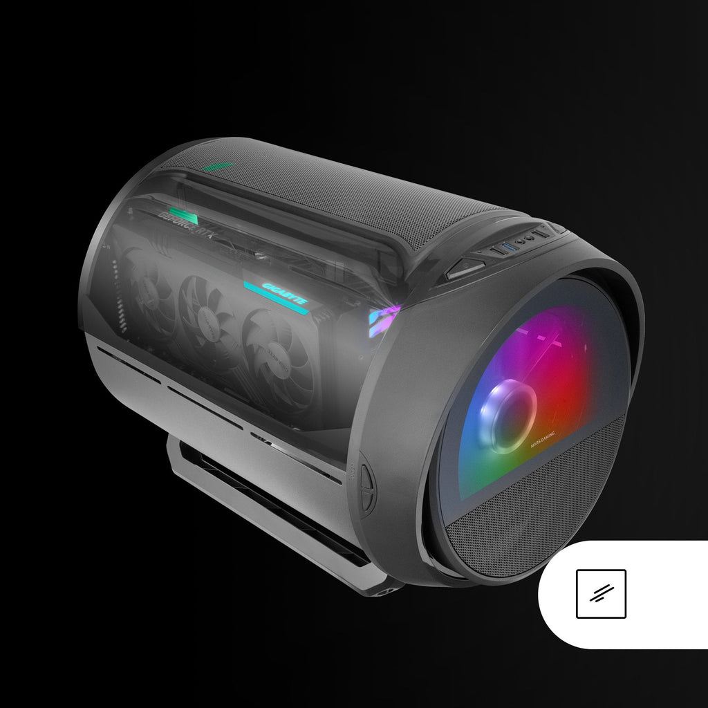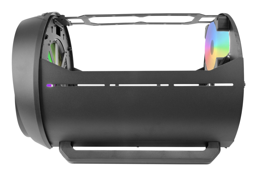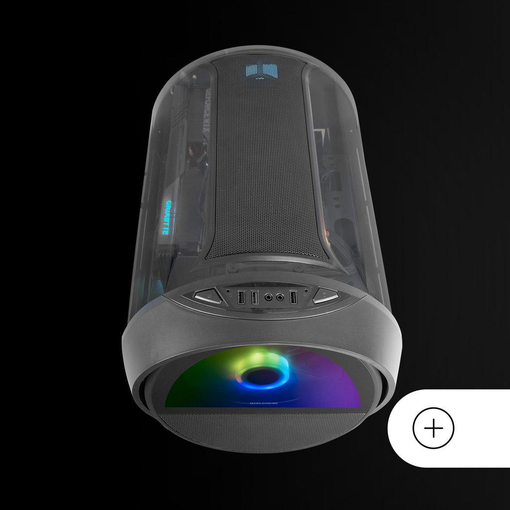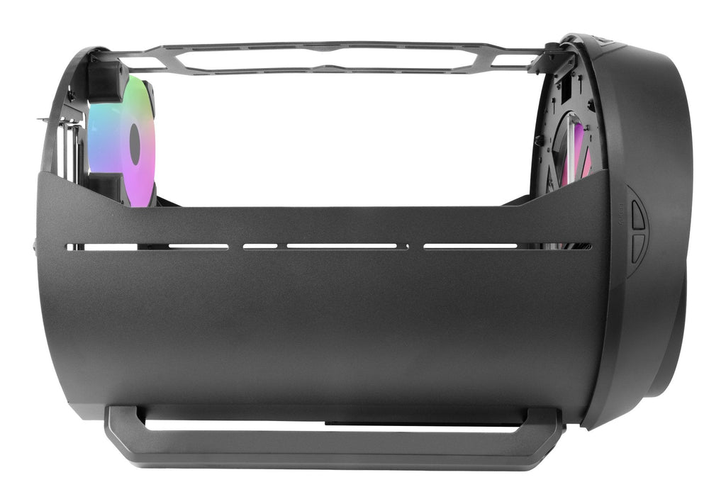 La MC-CYLON rompe con el diseño tradicional de cajas gaming. Su diseño cilíndrico, inspirado en turbinas futuristas, redefine las reglas del gaming. Es una declaración visual de poder y personalidad para creadores, jugadores y entusiastas que buscan algo más que una torre: una pieza central con identidad propia.