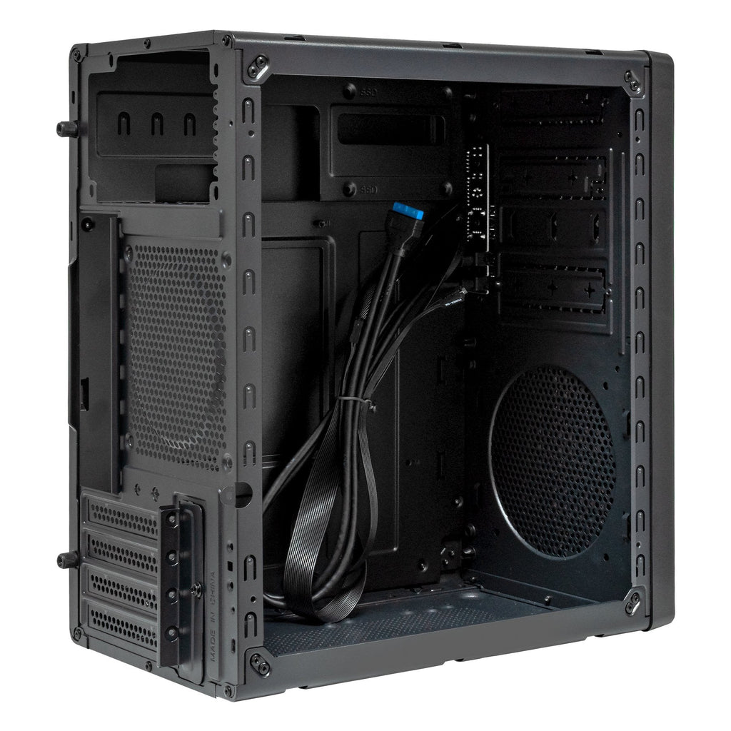 Dispone de múltiples opciones de almacenamiento, permitiendo instalar 1 unidad de 3,5” + 2 de 2,5” o hasta 3 de 2,5”, adaptándose a diversas configuraciones de discos duros y unidades SSD. Además, su compatibilidad con tarjetas gráficas de hasta 250 mm amplía las posibilidades de optimización del sistema.
