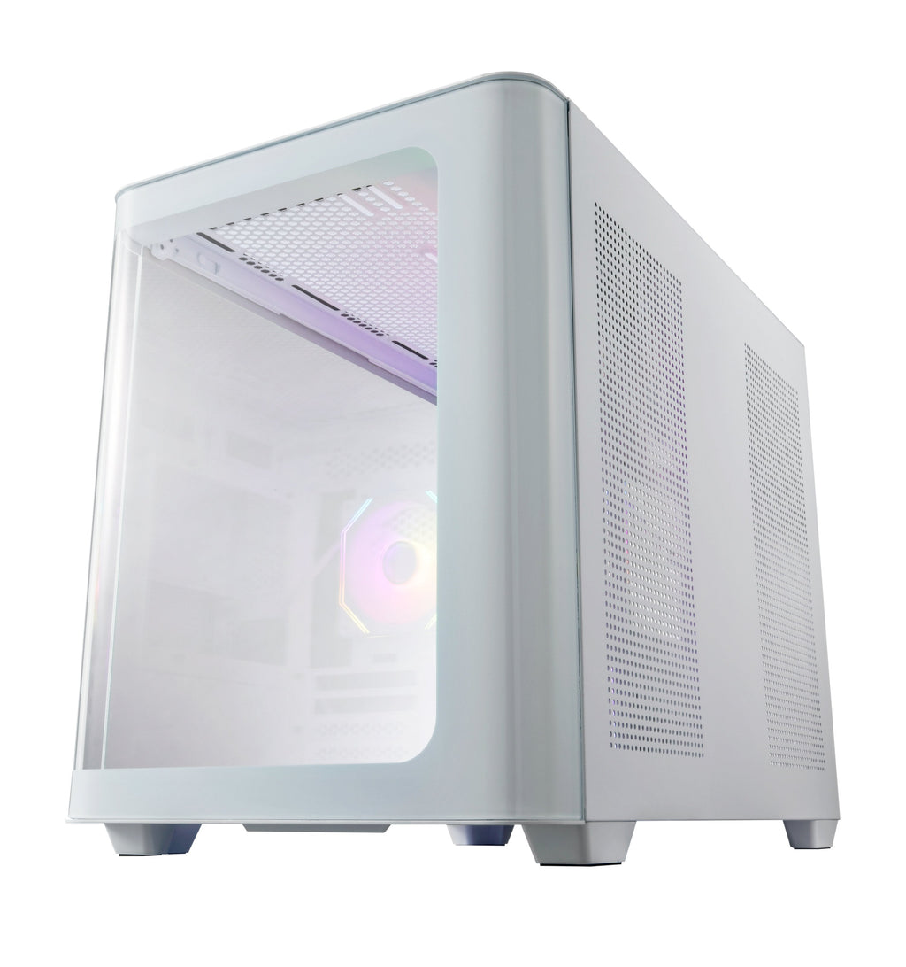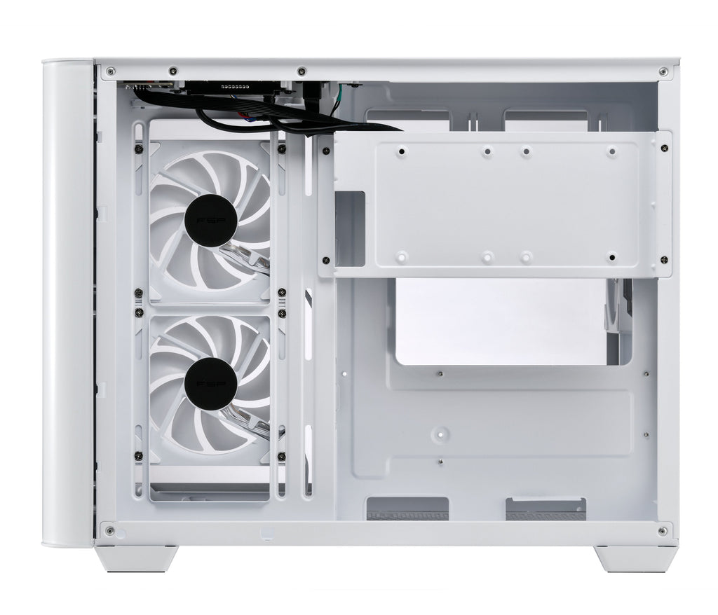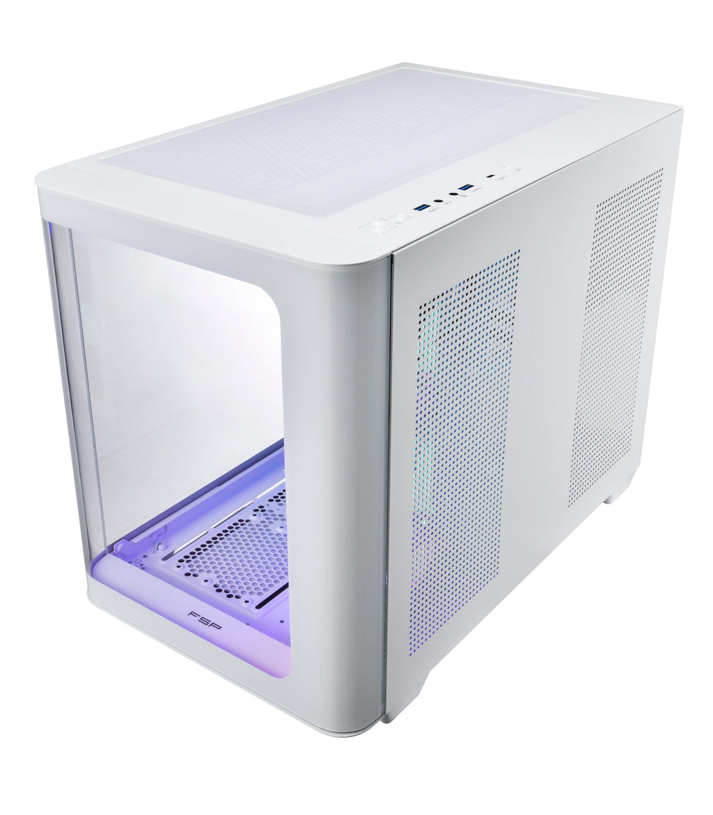 La caja para PC FSP S380 cuenta con un panel lateral curvado transparente que ofrece una visión de 270° que le permite ver sus accesorios de juego favoritos.