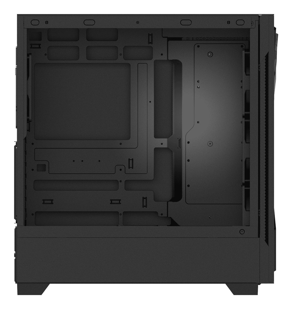 STARKER AIR BTF incluye un soporte E-ATX, que permite instalar una placa base E-ATX o utilizar el espacio para 2 compartimentos de 2,5" o 1 compartimento de 3,5". Alternativamente, puede quitar el soporte para instalar hasta 2 ventiladores adicionales de 120 mm en el lateral, aumentando el flujo de aire y mejorando la ventilación general del sistema.