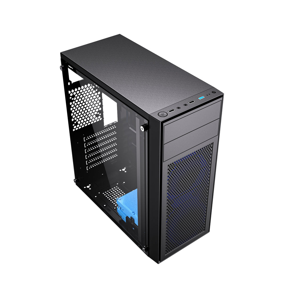 Gembird Fornax M100B, Midi Tower, PC, Negro, ATX, Vidrio, Metal, SPCC, Azul