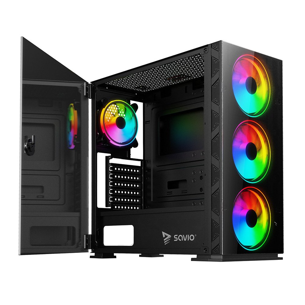 Savio PC Case Prime X1 ARGB Glass Black Midi Tower Negro