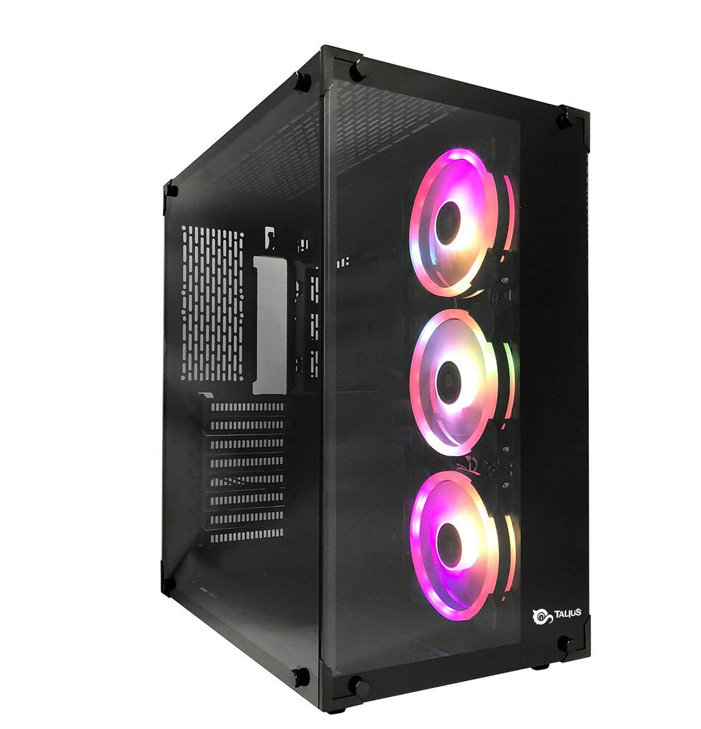 Muestra tu hardware de forma espectuacular en la parte visible con doble cristal templado y mantén oculto todo el cableado y la fuente de alimentación en la parte oculta.
