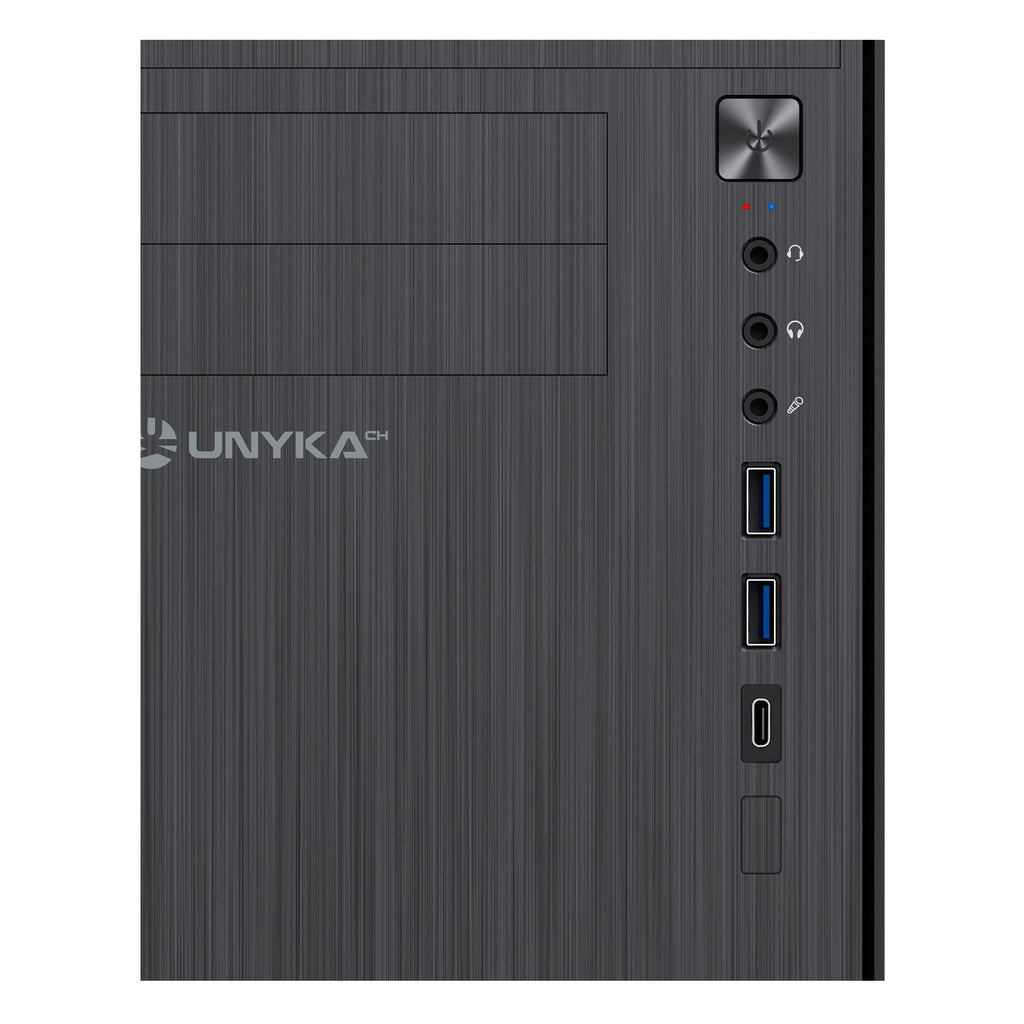 Si estás buscando una caja Micro ATX con un diseño discreto y de corte clásico, la AERO C12 V2 de UNYKAch es la opción perfecta para ti. Esta caja cuenta con un frontal elegante con efecto de aluminio cepillado. Además, la AERO C12 V2 incluye conexiones para dos puertos USB 3.0 y un puerto USB Type C 2.0, lo que permite una fácil conexión de periféricos y dispositivos externos de alta velocidad. También cuenta con conexiones para HD Audio y micrófono para una experiencia de audio de alta calidad.