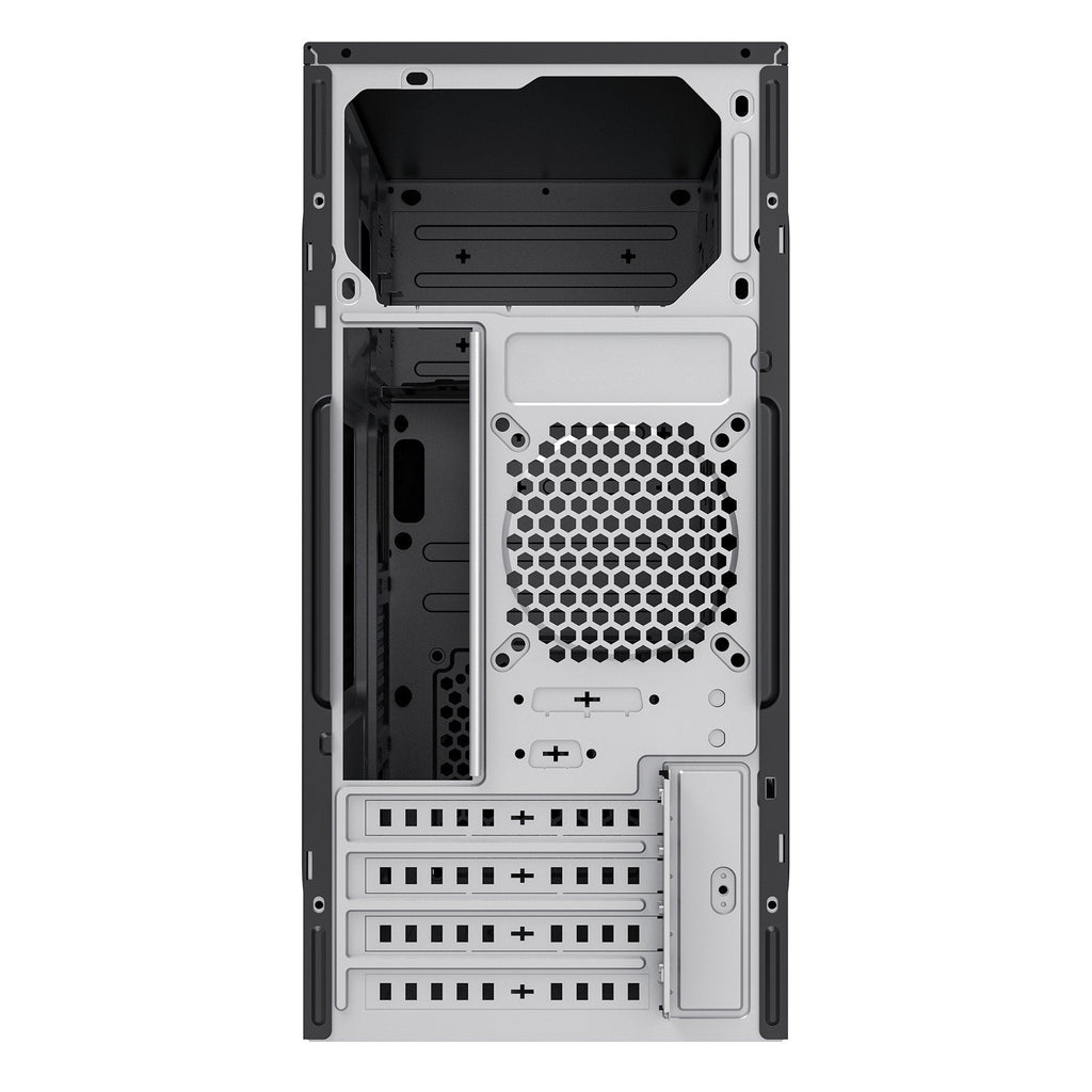 La caja AERO C12 V2 es compatible con fuentes de alimentación ATX (no incluida) que se instala en la parte superior para una mejor gestión de cables, especialmente construida para equipos de oficinas, colegios y usuarios domésticos.