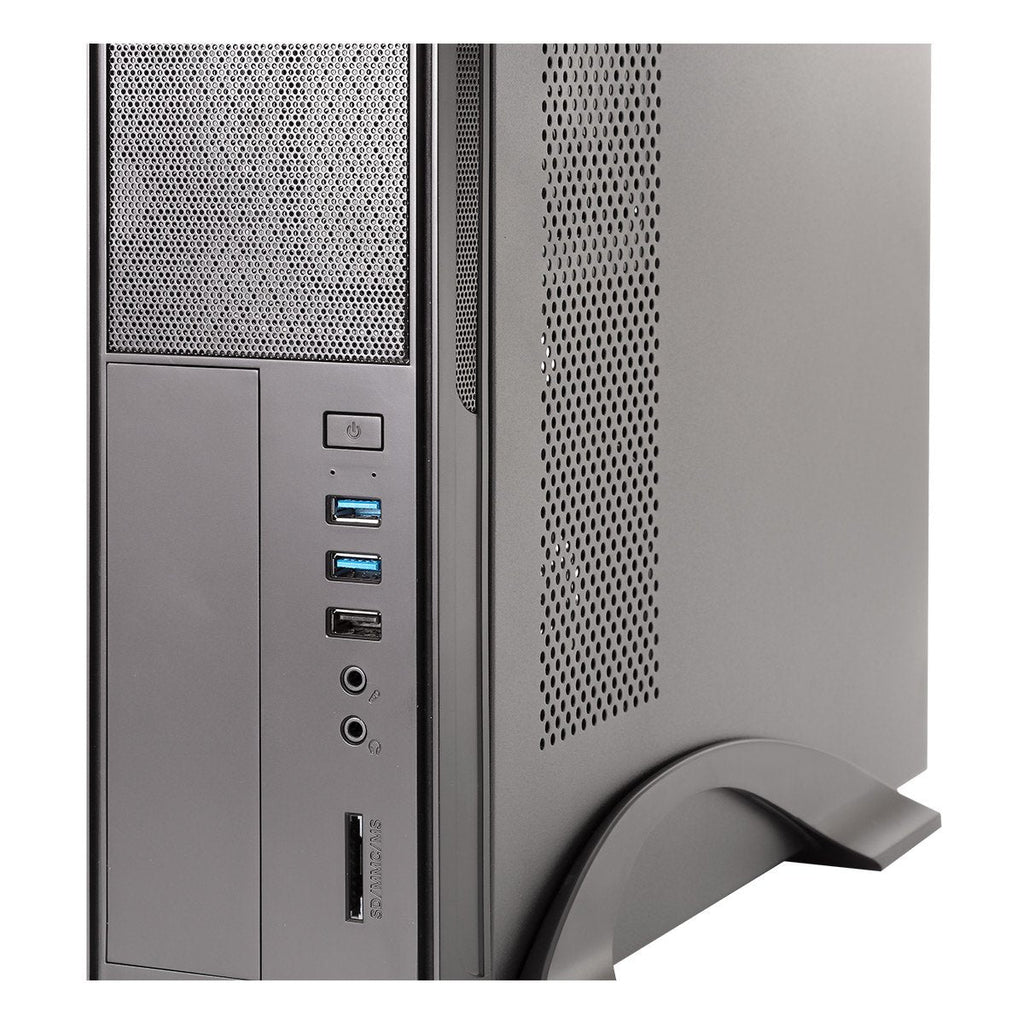 La caja Slim MATX 2010 cuenta con un diseño compacto e ideal para entornos profesionales y personales. Es compatible con fuentes de alimentación MicroATX.
