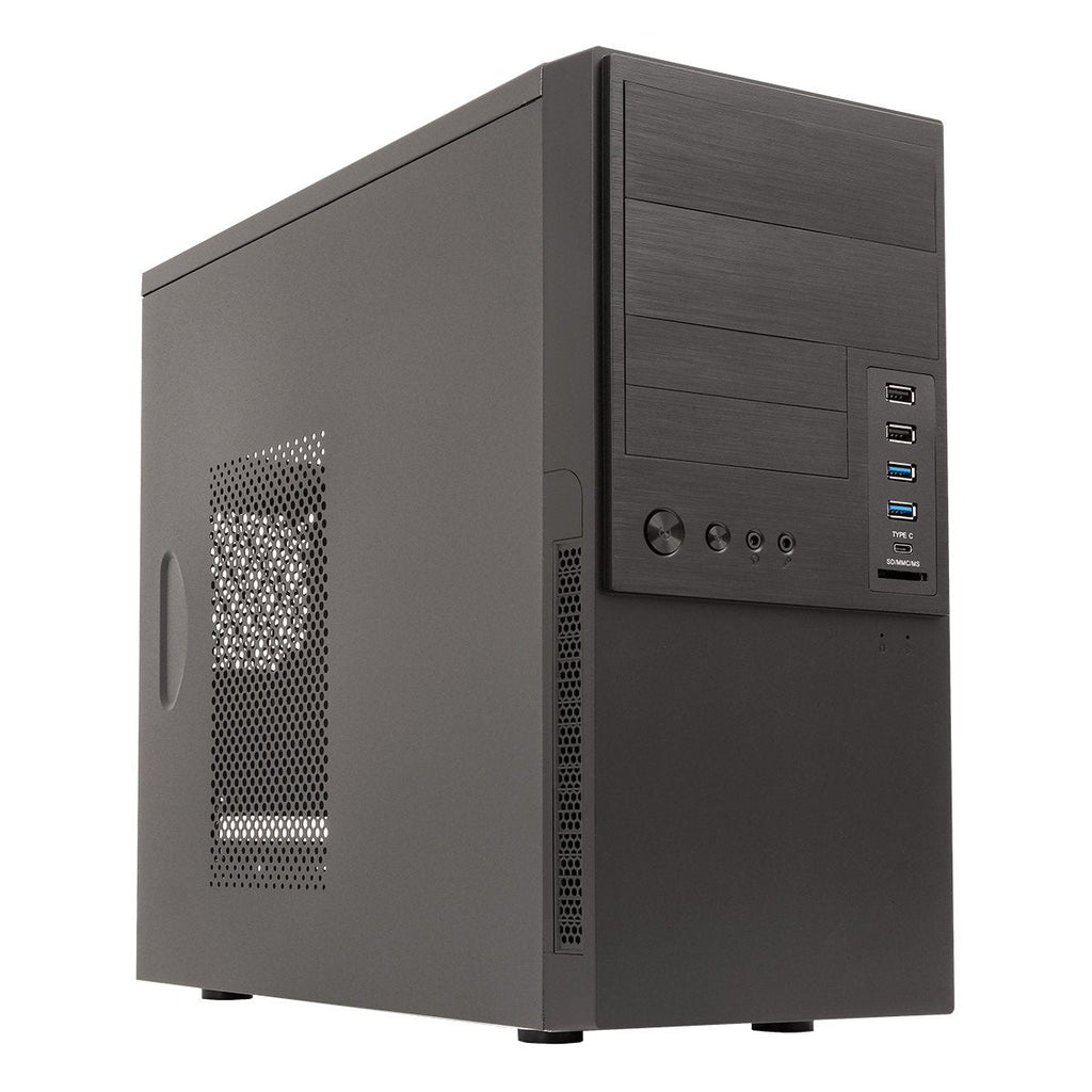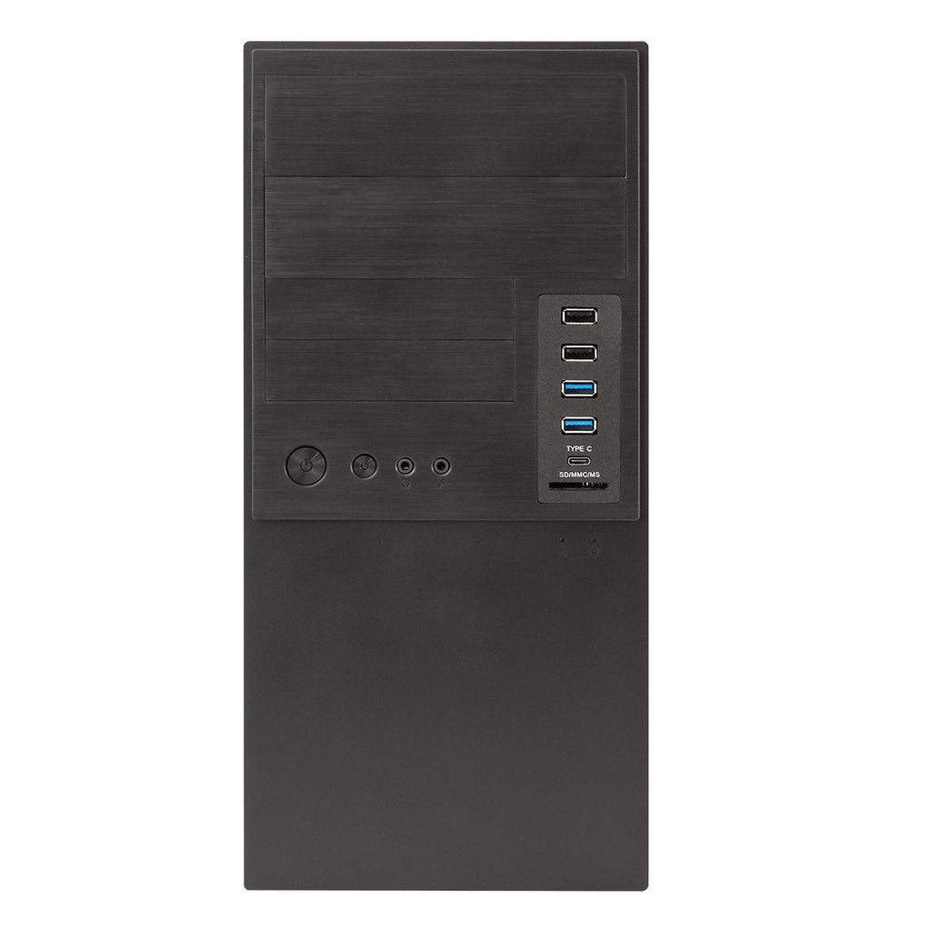 La caja MATX 6K Pro incluye en su frontal conectores USB 2.0, 3.0 y tipo C, lector de tarjetas así como conexión para micrófono y HD audio.