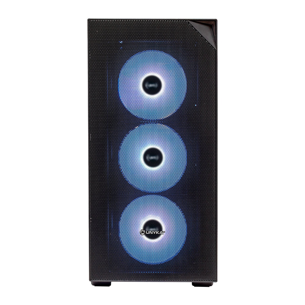La Revelat MESH Black de Unykach combina el rendimiento térmico de un chasis abierto con un lateral en cristal templado para mostrar con orgullo tu hardware personalizado. Diseño, flujo de aire y estilo RGB en un solo chasis.