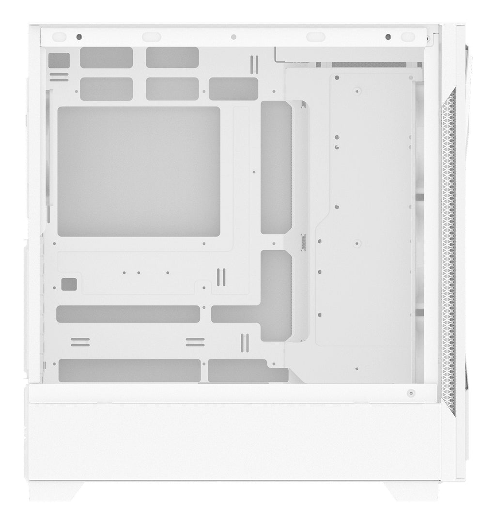 STARKER AIR BTF incluye un soporte E-ATX, que permite instalar una placa base E-ATX o utilizar el espacio para 2 compartimentos de 2,5" o 1 compartimento de 3,5". Alternativamente, puede quitar el soporte para instalar hasta 2 ventiladores adicionales de 120 mm en el lateral, aumentando el flujo de aire y mejorando la ventilación general del sistema.