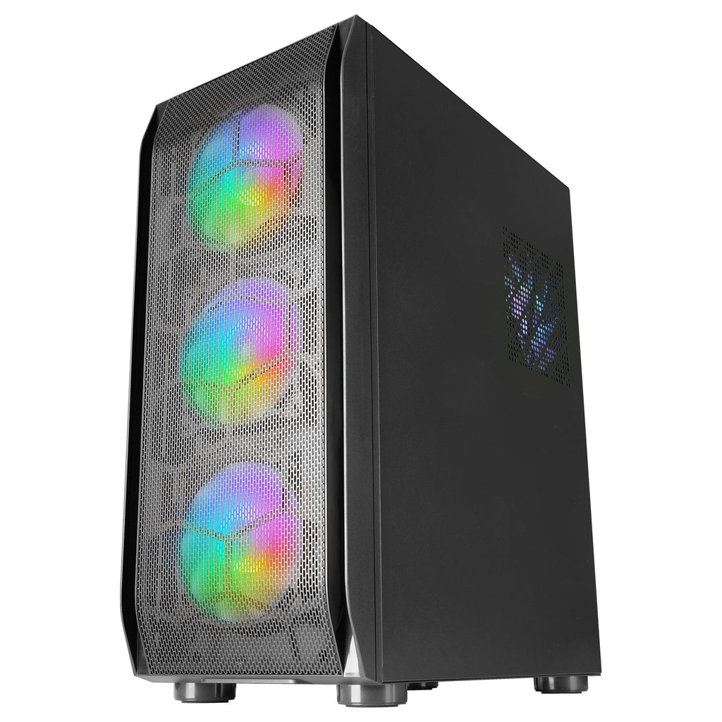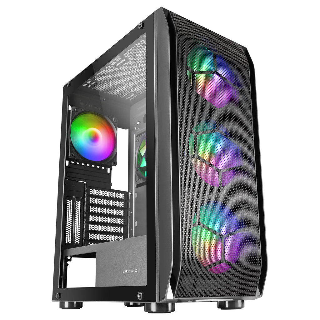 - DISEÑO PROFESIONAL XXL: La caja MC-KX cuenta con un diseño elegante y profesional con frontal en malla metálica completa y un enorme espacio interno para la instalación de componentes de alto rendimiento; Soporte para placas E-ATX, ATX, micro-ATX y mini-ITX, ranuras verticales y 5 ventiladores ARGB de 120mm incluidos; Además, podrás mostrar el interior gracias a su ventana lateral de cristal templado de la más alta calidad