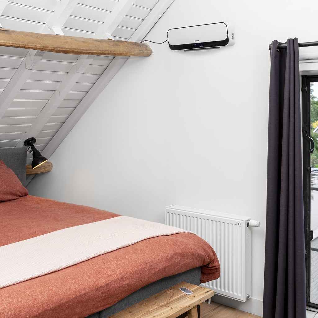 El calefactor cerámico Tristar KA-5075 es ideal para su hogar. Este calefactor se puede montar en cualquier pared, por lo que no ocupará espacio en el suelo. Con una potencia de 2000 W, la habitación se calentará en un santiamén. El calefactor cuenta con 2 ajustes de calor distintos. Todo se puede leer fácilmente en su pantalla LED. Gracias a su mando a distancia incluido disfrutará de una mayor comodidad, ya que no tendrá que volver a ponerse de pie para ajustarlo. Puesto que el calefactor es oscilante, el calor se dispersará por toda la habitación de manera uniforme.