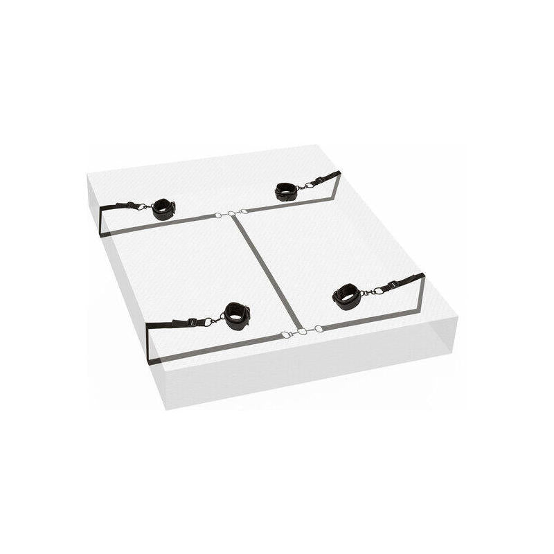 - Información adicional 4 puños de muñeca o tobillo totalmente ajustables y desmontables | 4 robustas correas ajustables para adaptarse a la mayoría de los colchones | Puede utilizarse bajo cualquier cama o como ataduras individuales | Cierres universales y anillos en O con diseño giratorio para una total destreza | Interior suave y lujoso con exterior de cuero vegano | Costuras dobles acolchadas y cosidas | Diseño funcional, duradero y con textura