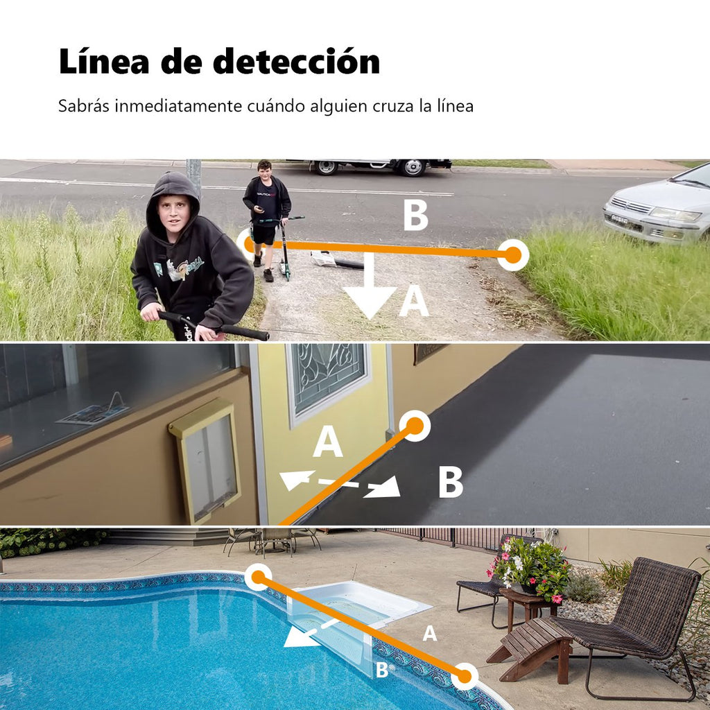 - Región de detección y Línea de detección: elija en qué zonas está activa la cámara.