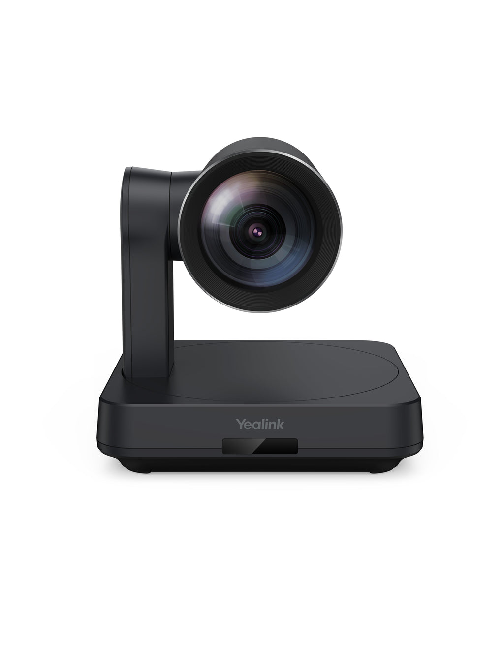 La Yealink UVC84, una cámara PTZ 4K diseñada para salas medianas y grandes, ofrece comunicación realista con su cámara 4K, encuadre automático y audio integrado.
