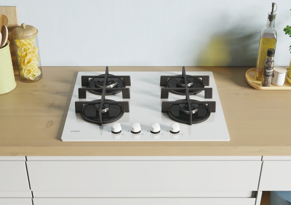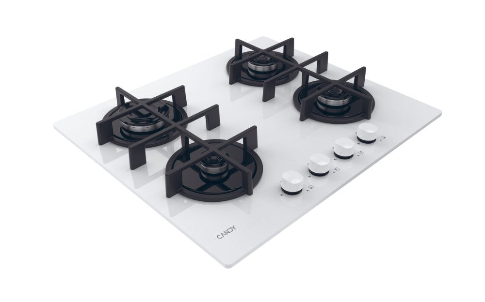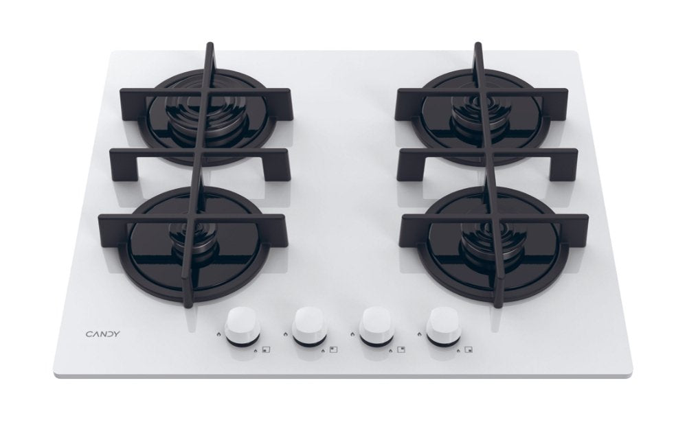 Candy CVG6WW, Blanco, Integrado, 59 cm, Encimera de gas, Vidrio templado, 4 zona(s)