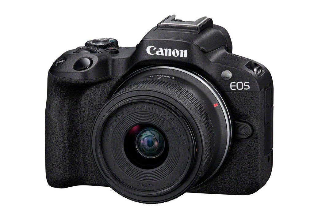 Canon EOS R50, Black + RF-S 18-45mm F4.5-6.3 IS STM Kit, 24,2 MP, 6000 x 4000 Pixeles, CMOS, 4K Ultra HD, Pantalla táctil, Negro