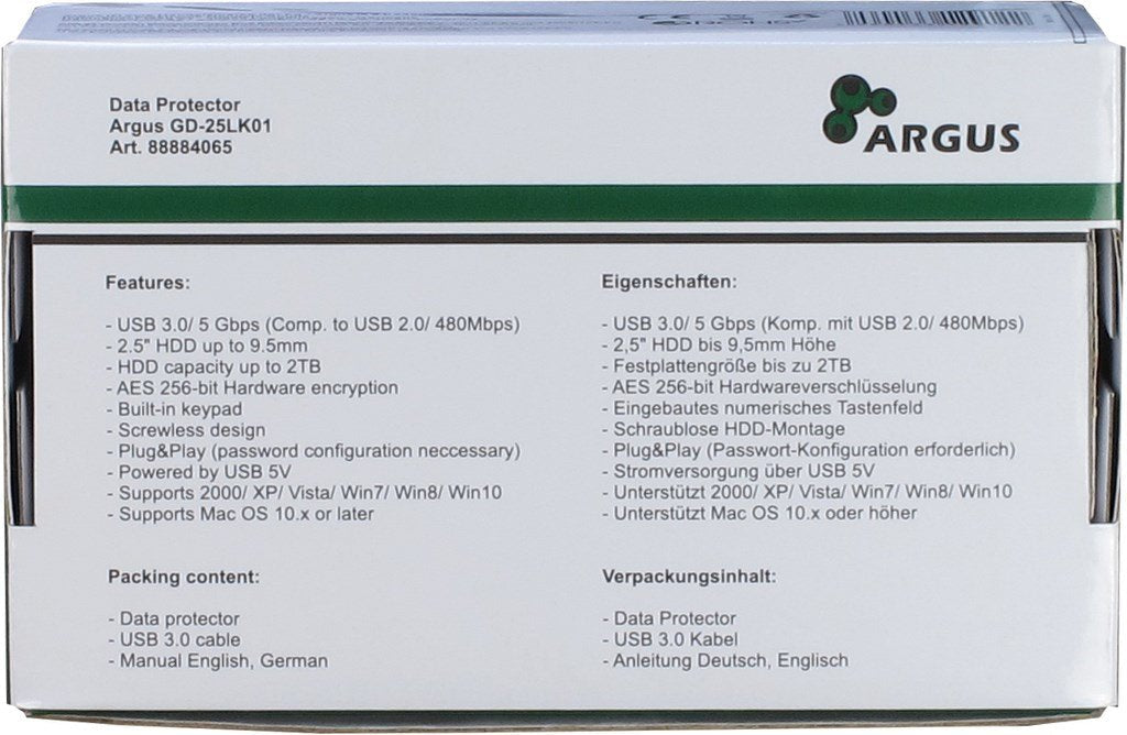 Inter-Tech GD-25LK01, Caja de disco duro (HDD), 2.5", SATA, Serial ATA II, Serial ATA III, 5 Gbit/s, Conexión USB, Aluminio, Negro