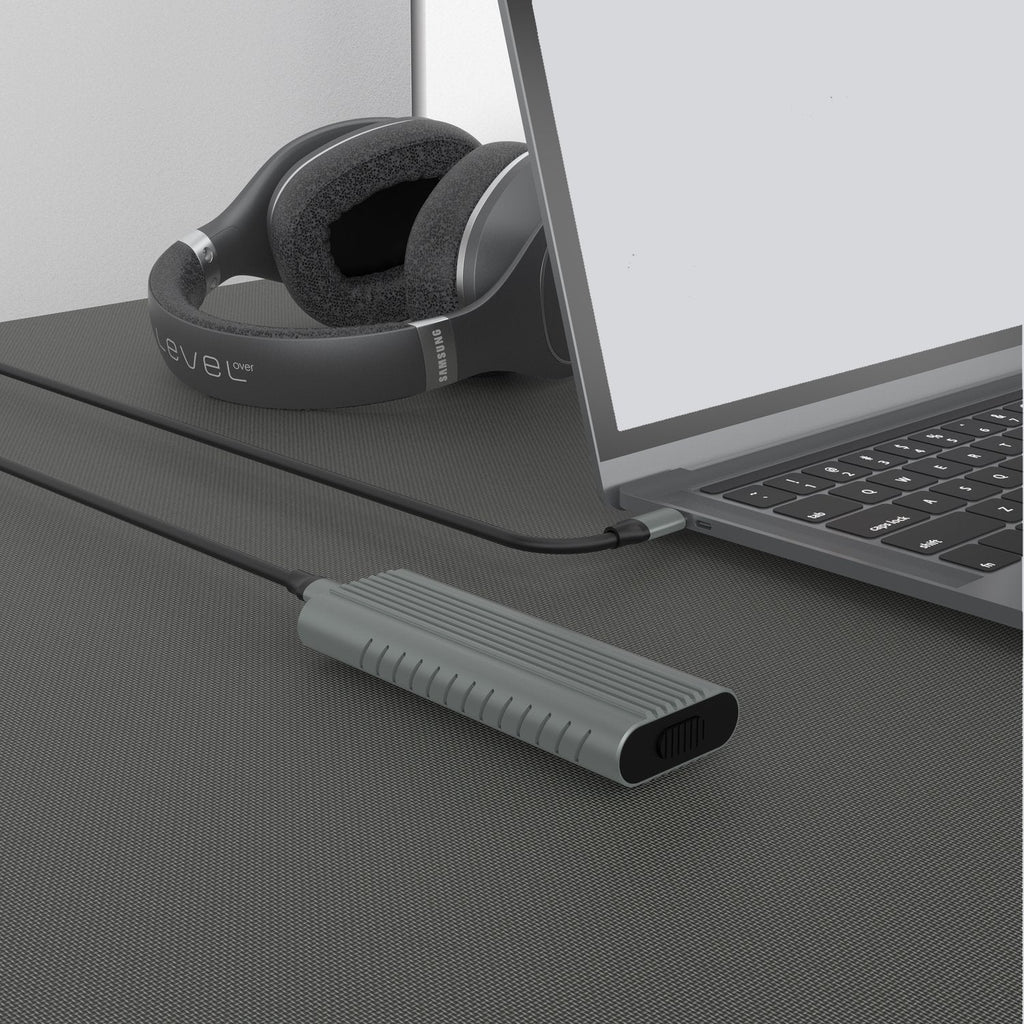 La carcasa de aluminio para unidades SSD viene con un cable USB-C a USB-C y un cable USB-C a USB-A. Su unidad SDD M.2 NVMe/PCIe estará lista para su uso en pocos minutos.